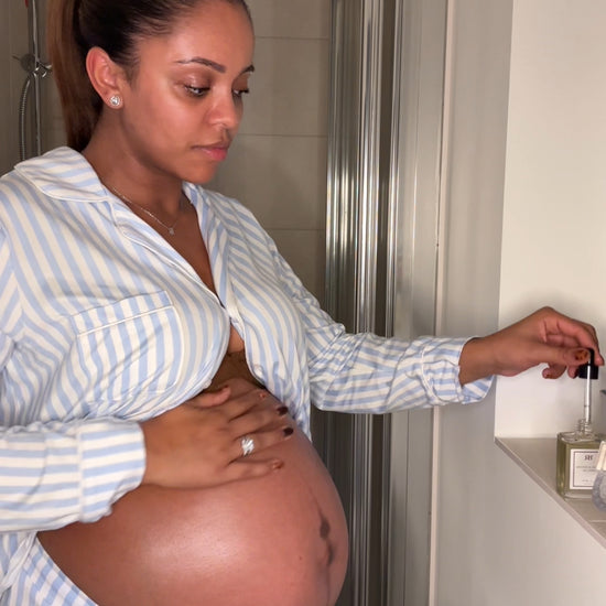 Supports elasticity, softens the look of stretch marks, and comforts areas that feel dry or tight before, during and after pregnancy. Paired with a complimentary aromatic candle and silk eye mask, this ritual was made for slow evenings, intentional touch and moments of self-care your body deserves.